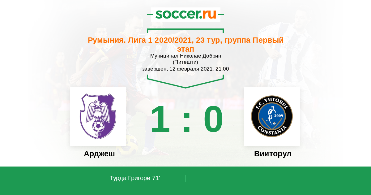 Протокол матча Арджеш против Вииторул