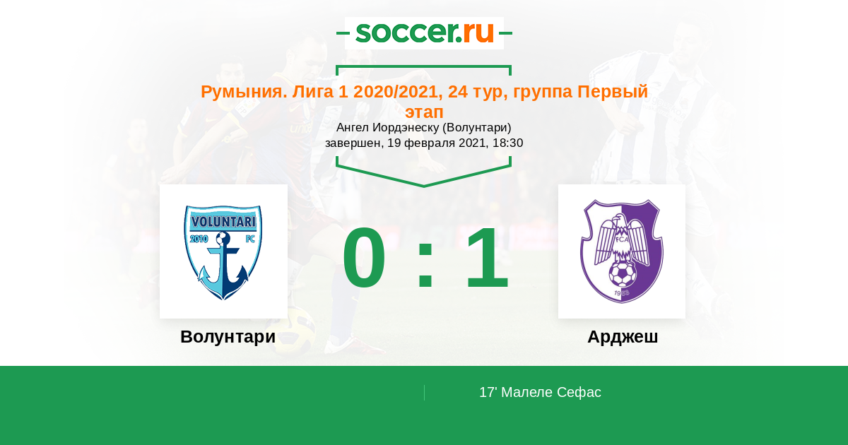 17' (0:1) Малеле Сефас (28) (Димитру Кристиан (7))