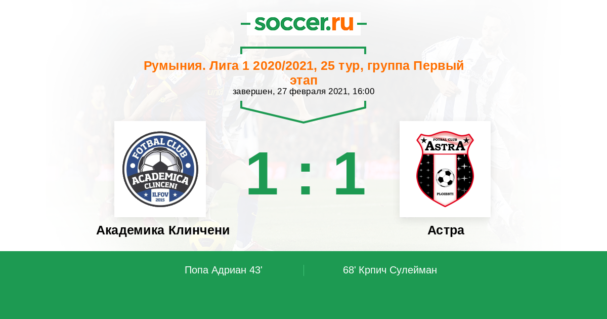 68' (1:1) Крпич Сулейман (9) (Радут Михай (90))