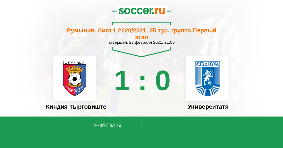 79' (1:0) Якоб Пол (66) (Негут Кристиан (20))