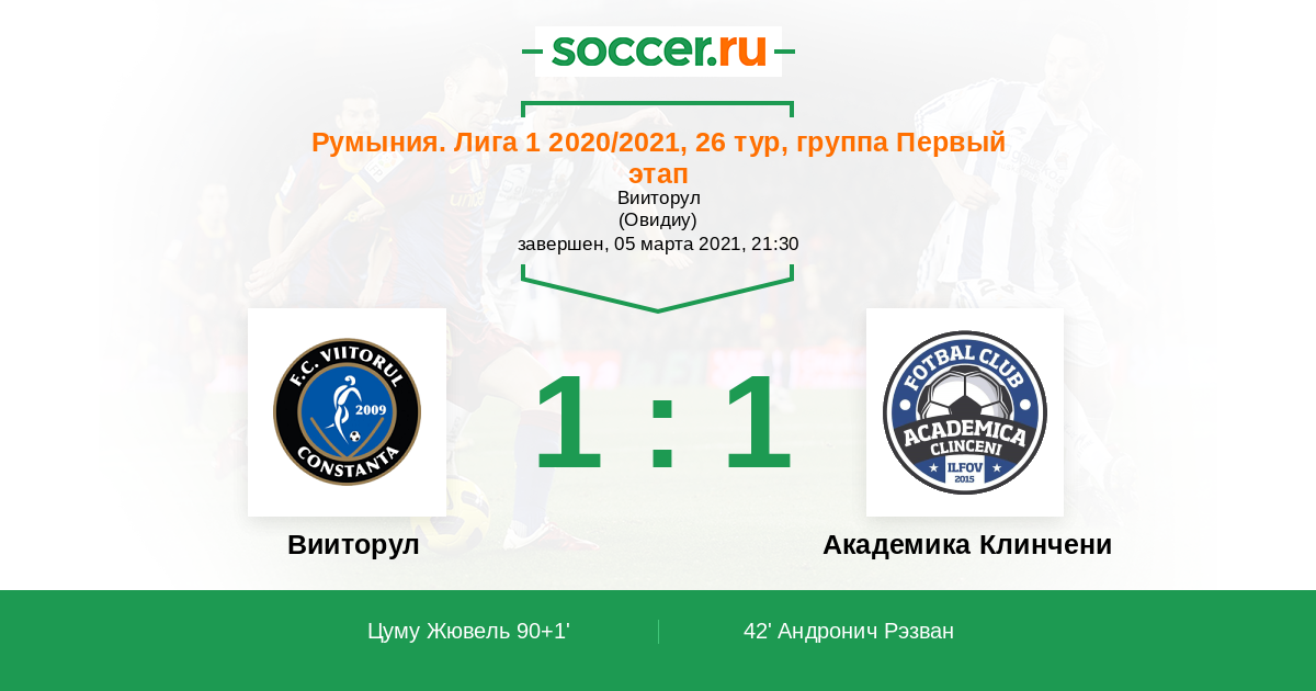 42' (0:1) Андронич Рэзван (28) (Тэнасе Кристиан (10))