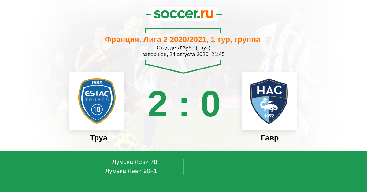 В последних двух матчах «Гавр» стабильно переигрывал «Труа» с минимальным преимуществом 2:1 и 1:0.