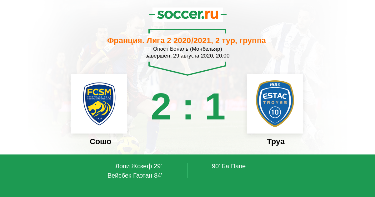 Протокол матча Сошо против Труа