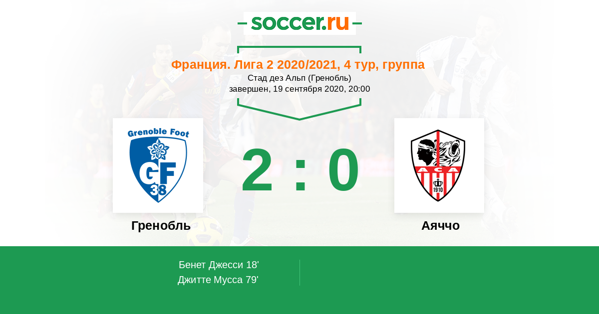 Протокол матча Гренобль против Аяччо