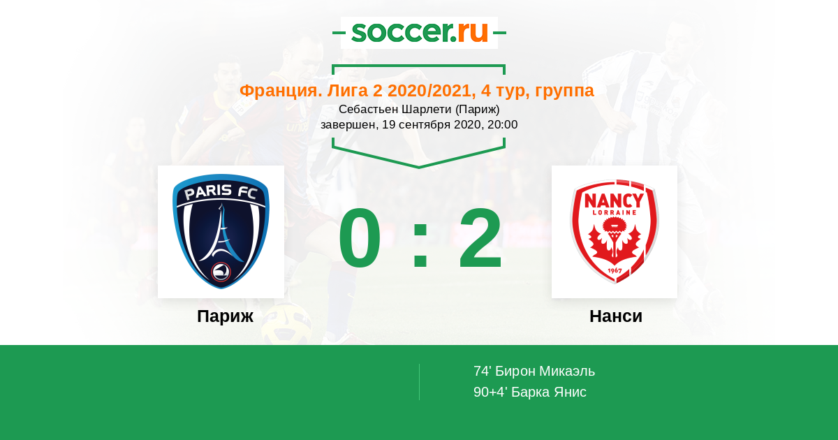 Протокол матча Париж против Нанси