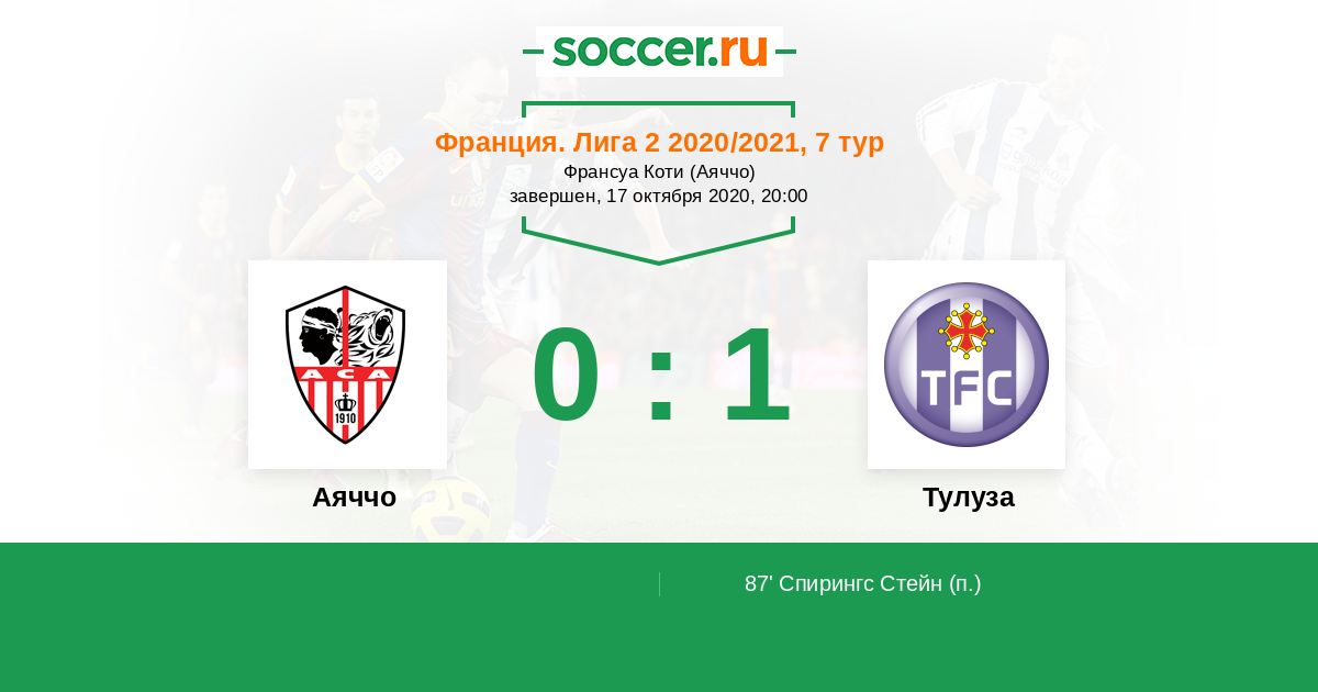 Протокол матча Аяччо против Тулуза