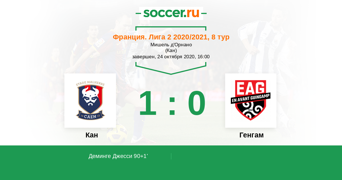 Протокол матча Кан против Генгам