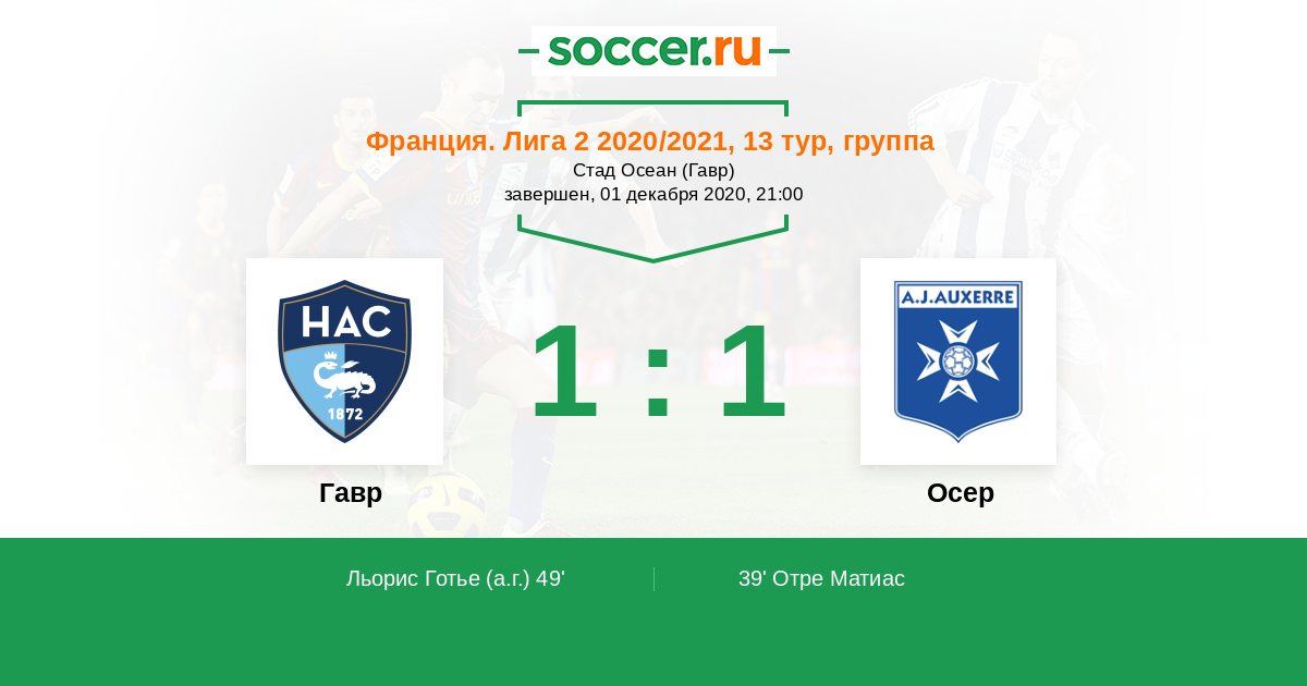Протокол матча Гавр против Осер