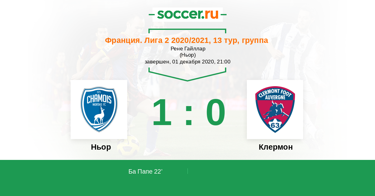 Протокол матча Ньор против Клермон