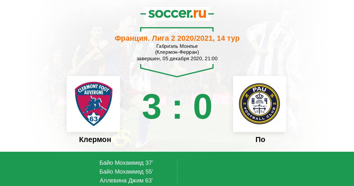 Протокол матча Клермон против По