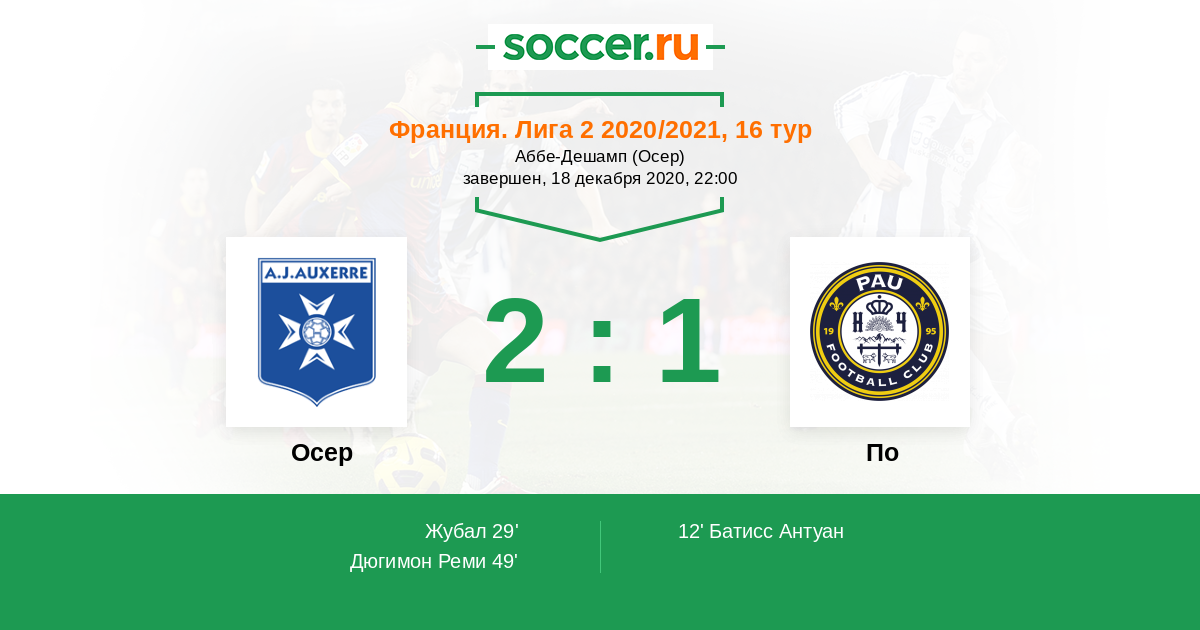 Протокол матча Осер против По