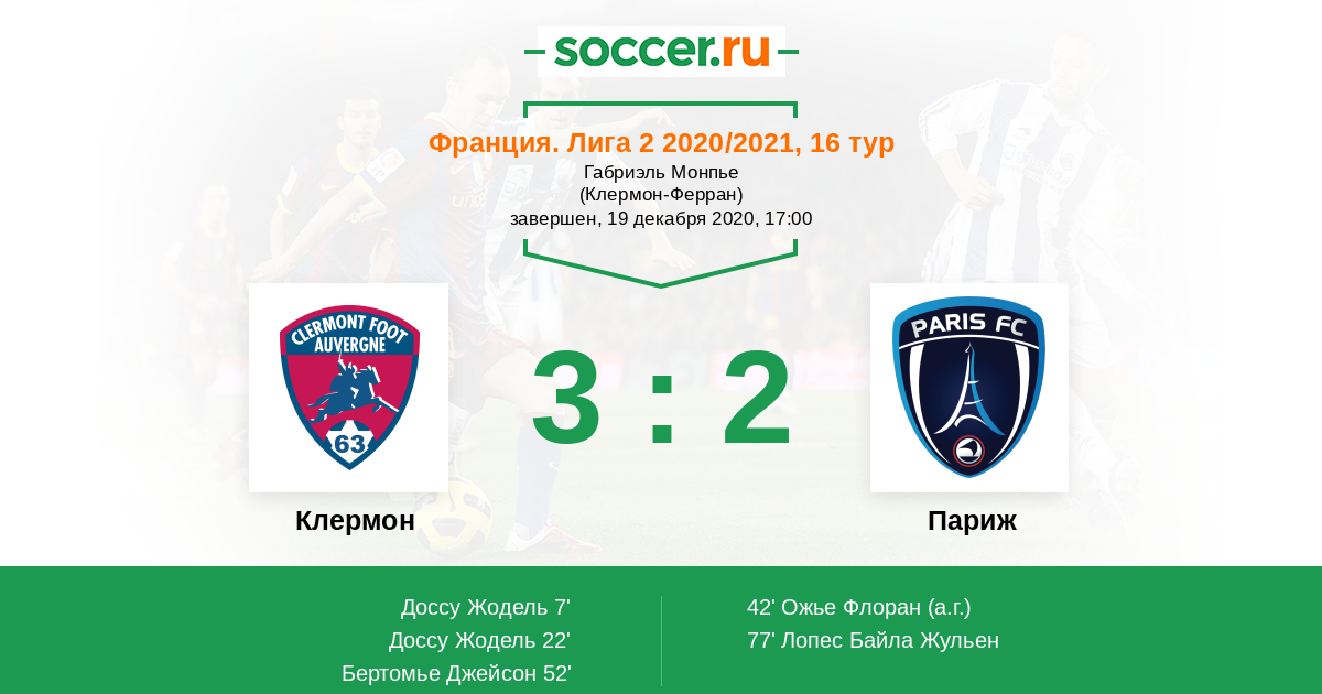 Протокол матча Клермон против Париж