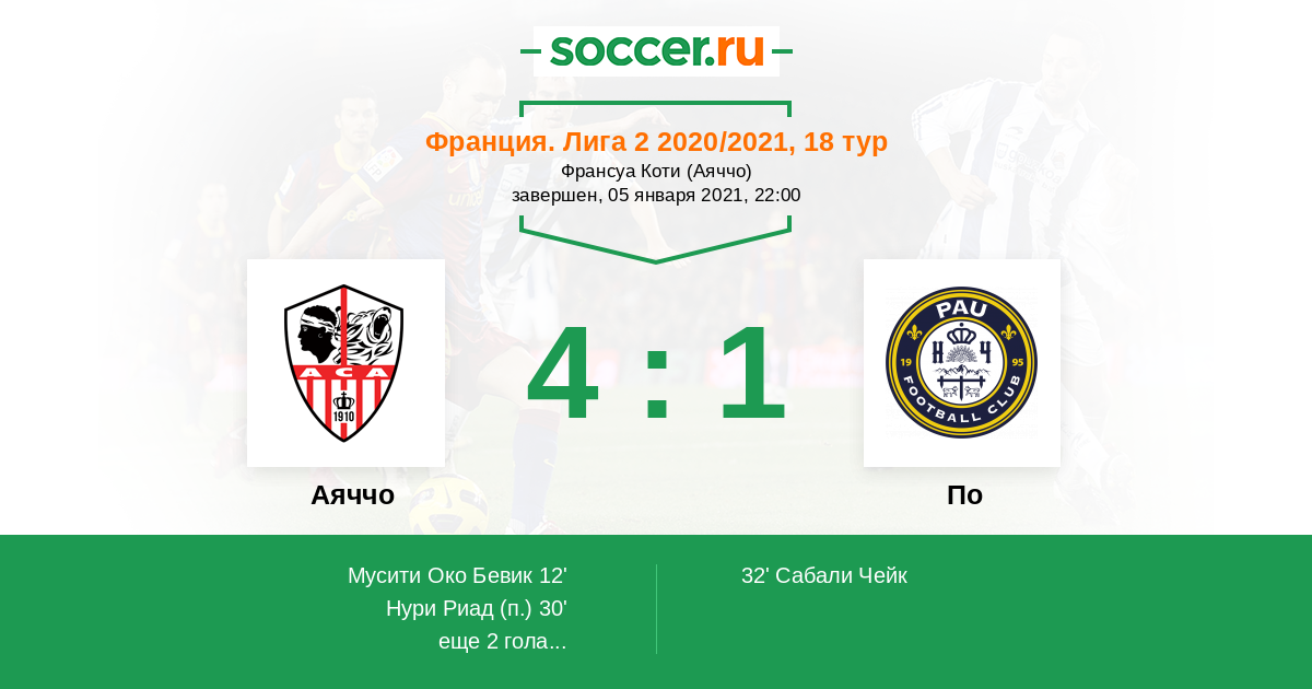 Протокол матча Аяччо против По