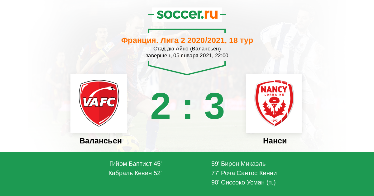 Протокол матча Валансьен против Нанси