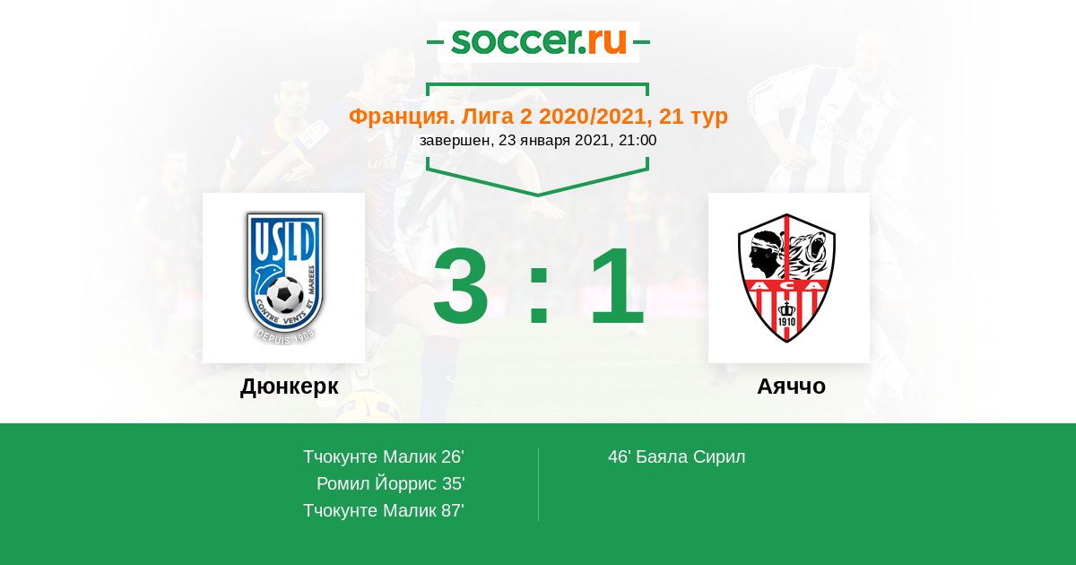 Протокол матча Дюнкерк против Аяччо