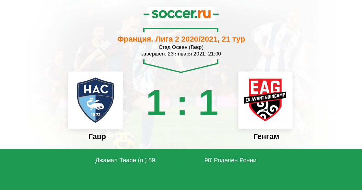 Протокол матча Гавр против Генгам