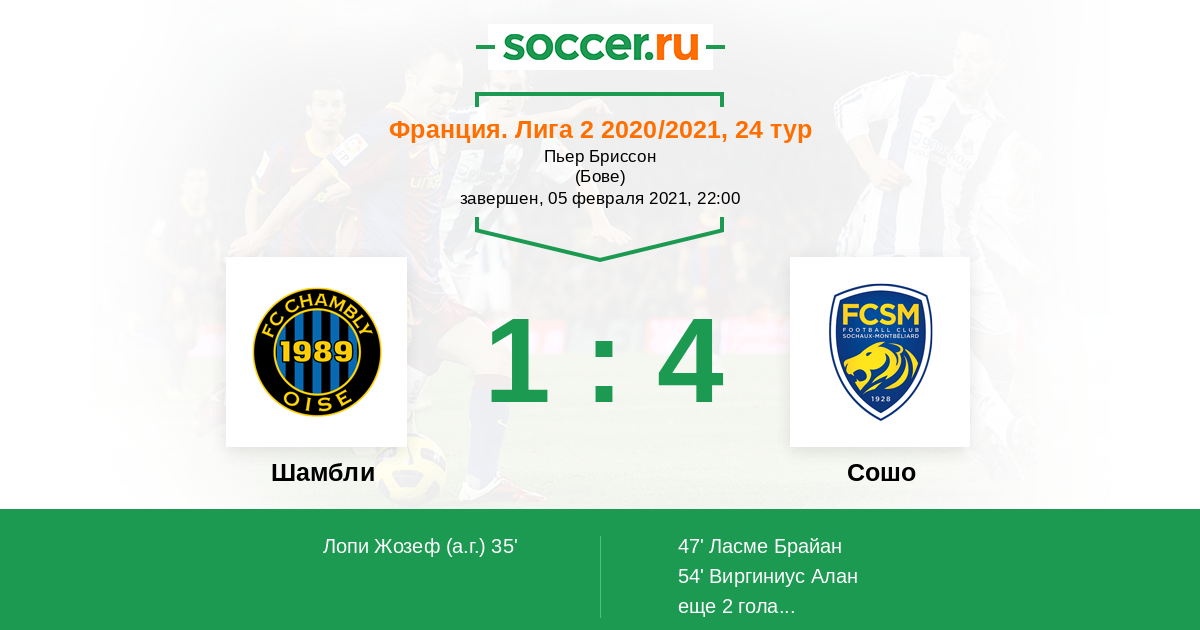 Протокол матча Шамбли против Сошо