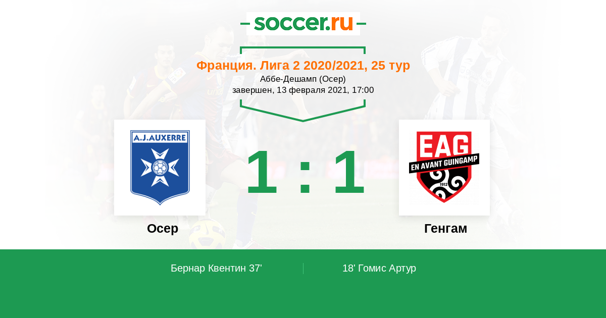 Протокол матча Осер против Генгам