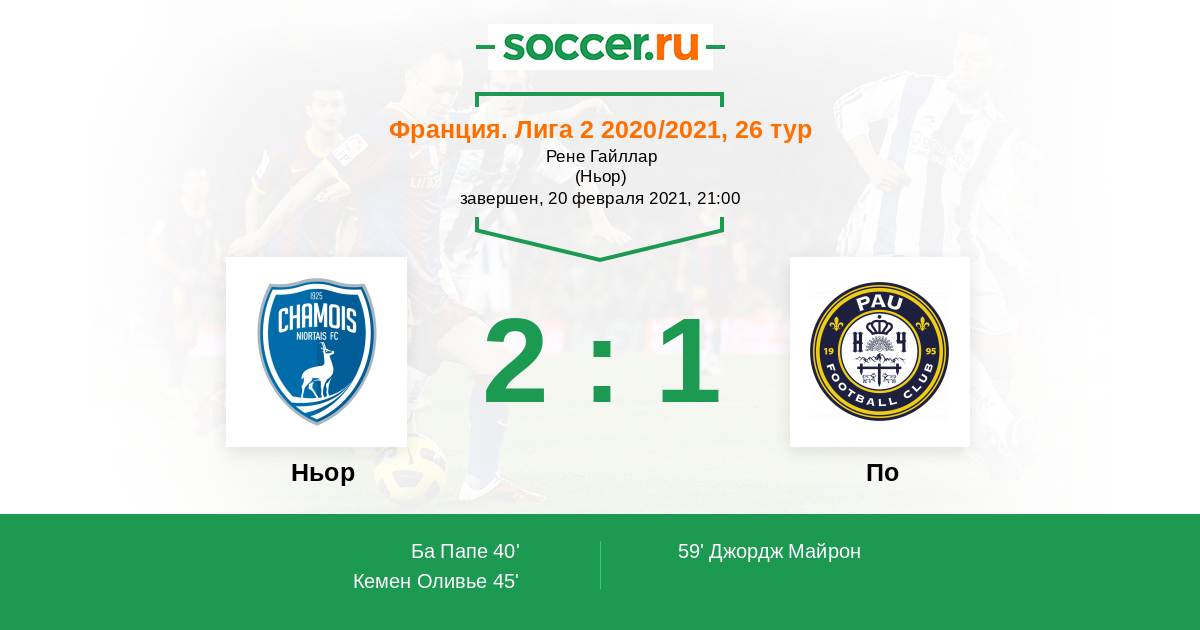 45' (2:0) Кемен Оливье (8) (Бутобба Билал (25))