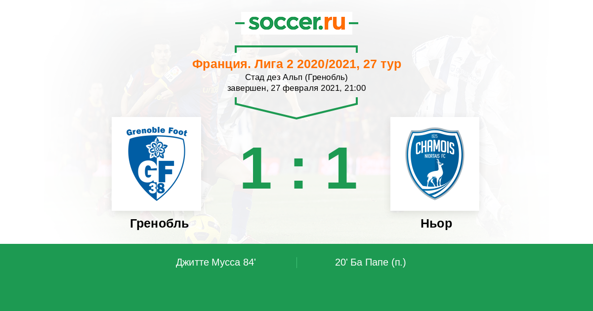 Протокол матча Гренобль против Ньор