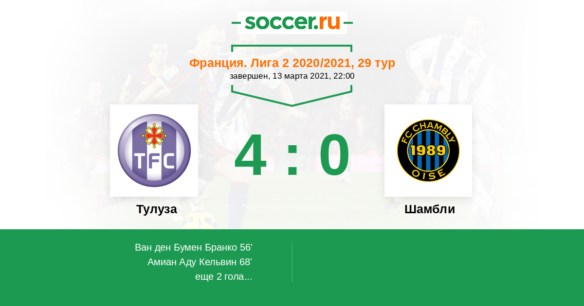 Протокол матча Тулуза против Шамбли