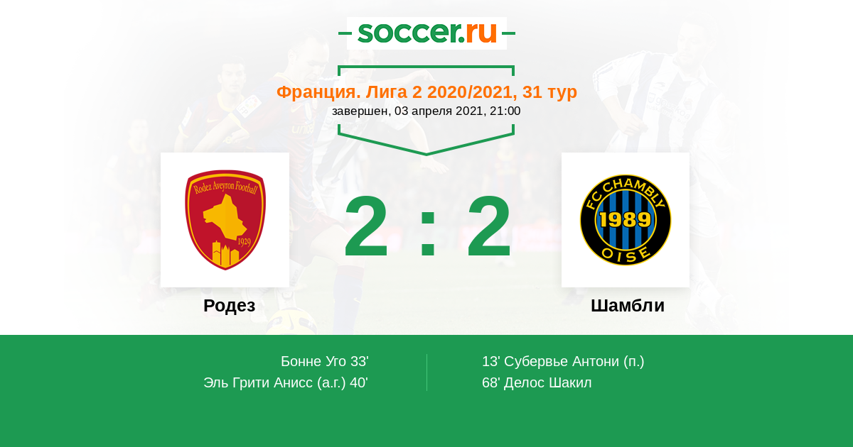 68' (2:2) Делос Шакил (18) (Петкович Никола (21))