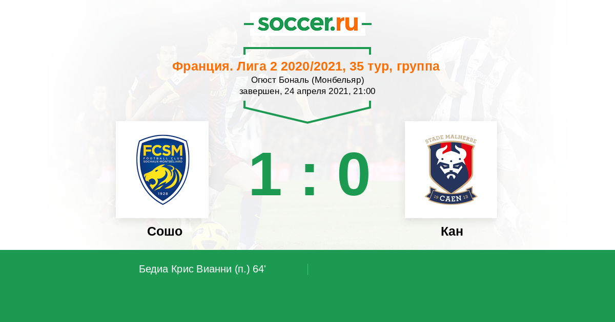 Протокол матча Сошо против Кан