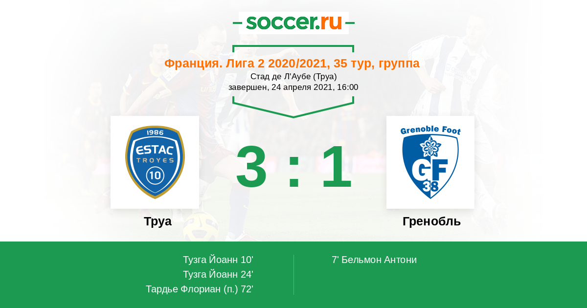Протокол матча Труа против Гренобль