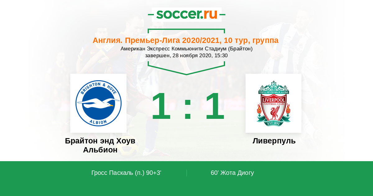 По итогу, Ливерпулю не удалось "малой кровью" и с потерями в составе взять три очка, Брайтон же наконец "получает подарок" на последних минутах и спасается в концовке =))