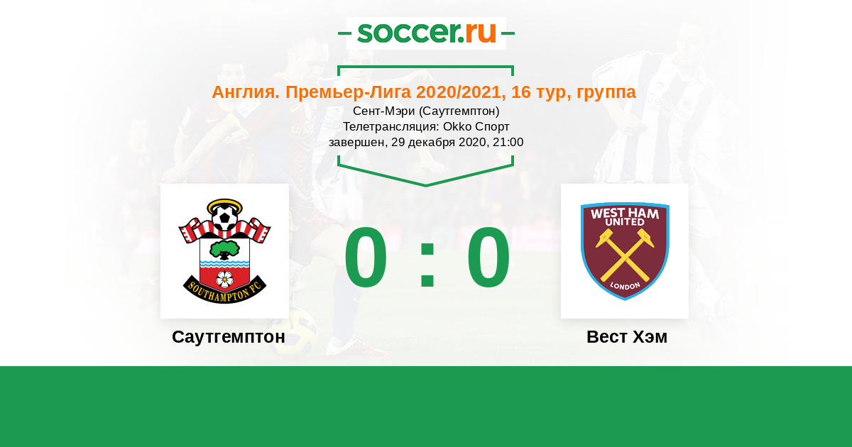 Протокол матча Саутгемптон против Вест Хэм