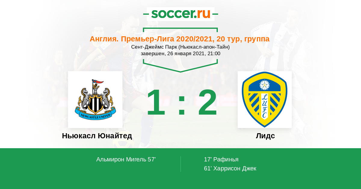 Протокол матча Ньюкасл Юнайтед против Лидс