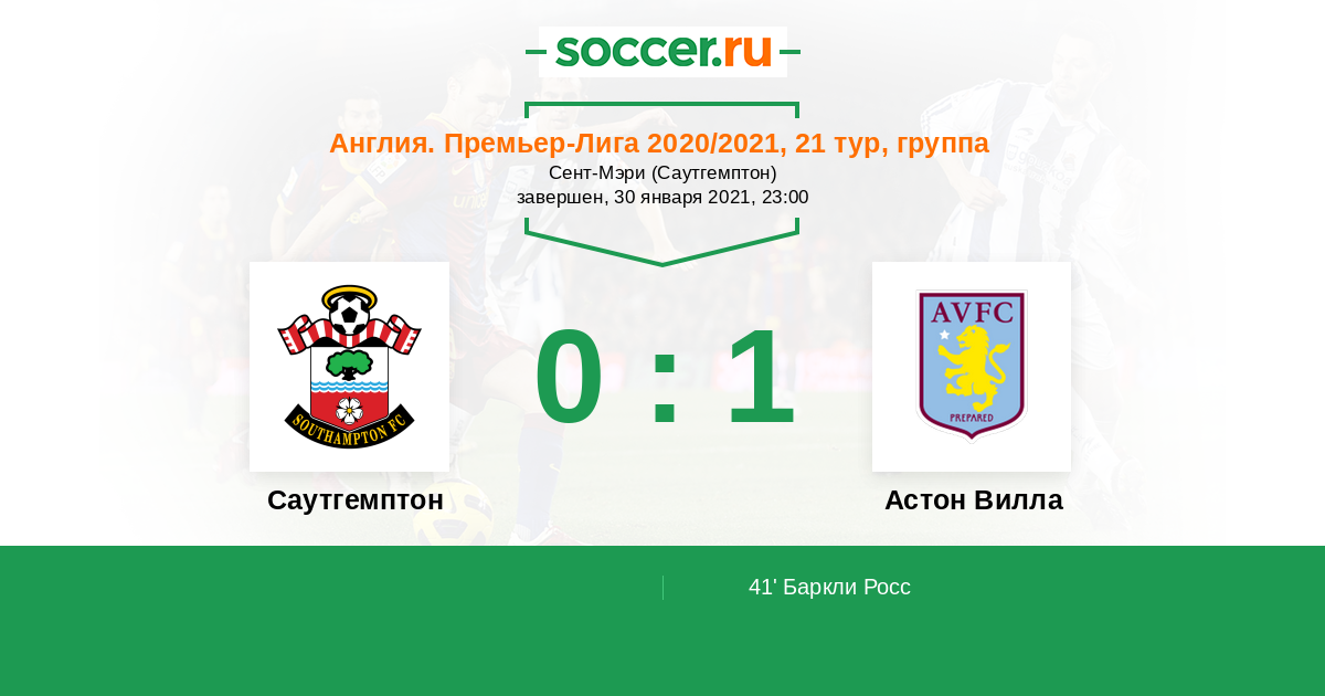 Протокол матча Саутгемптон против Астон Вилла