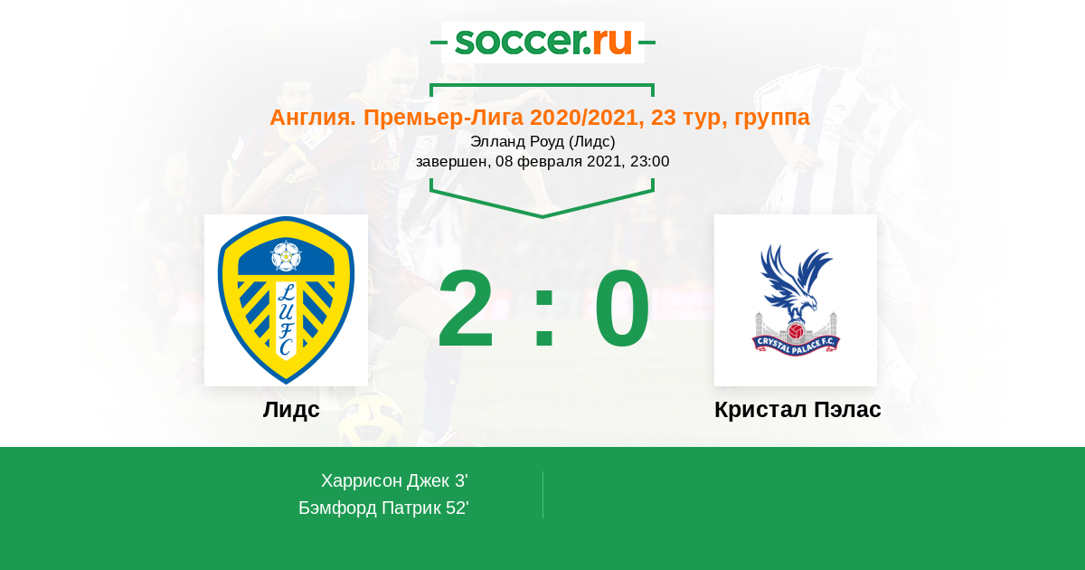 Протокол матча Лидс против Кристал Пэлас