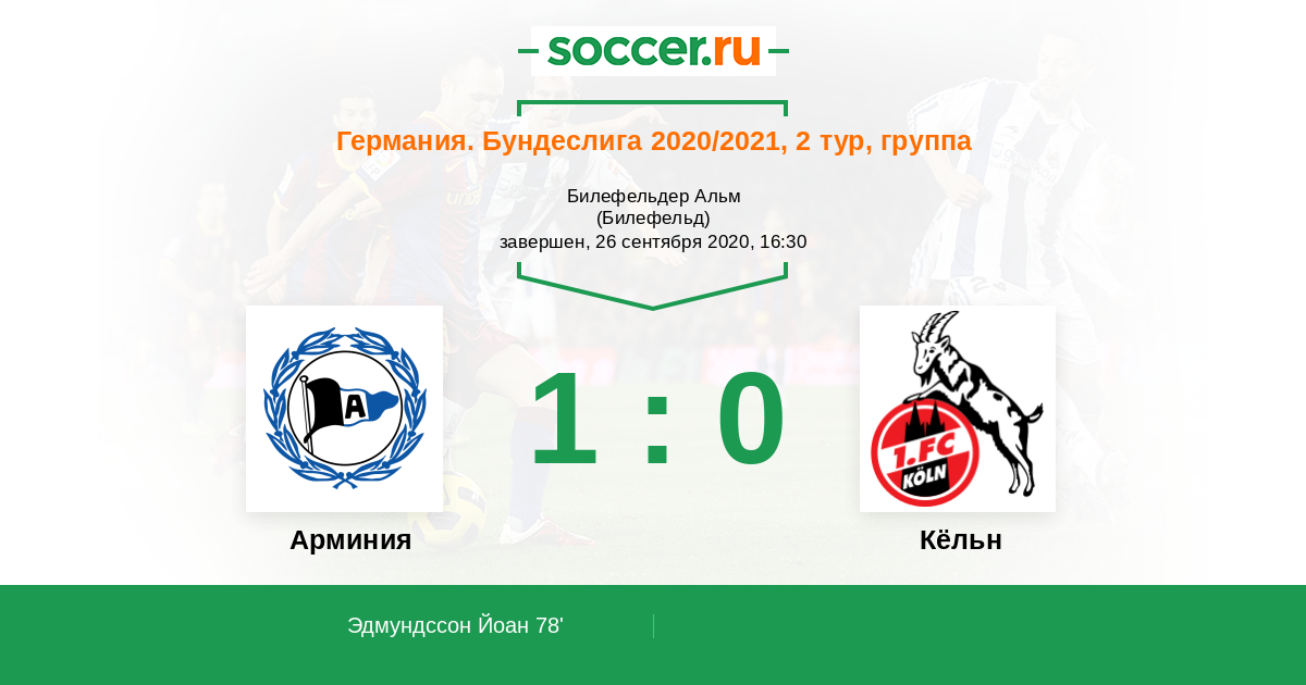 Протокол матча Арминия против Кёльн