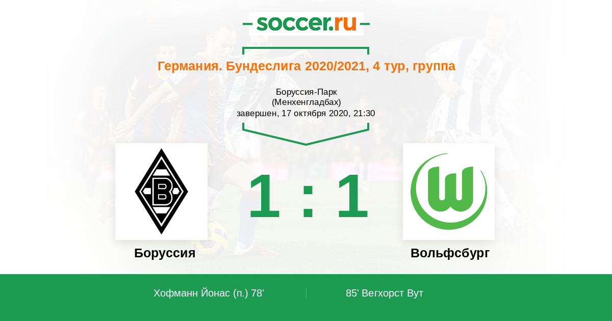 Протокол матча Боруссия против Вольфсбург