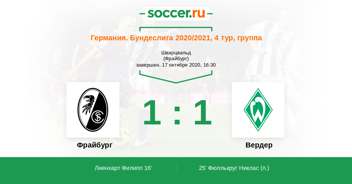 Протокол матча Фрайбург против Вердер