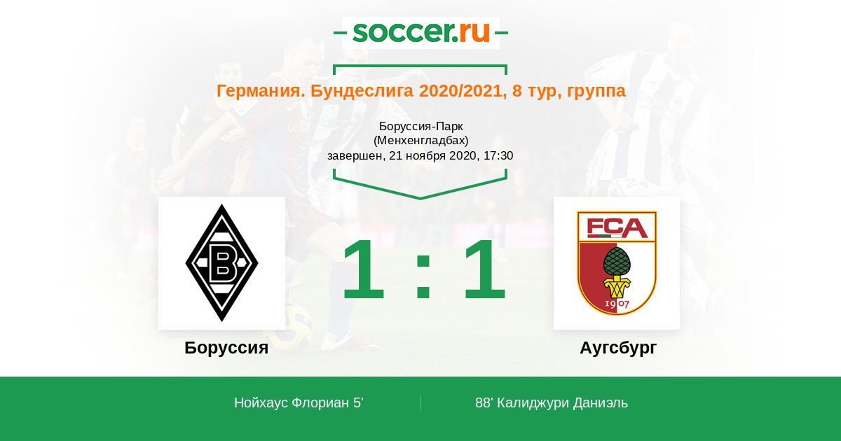 Протокол матча Боруссия против Аугсбург
