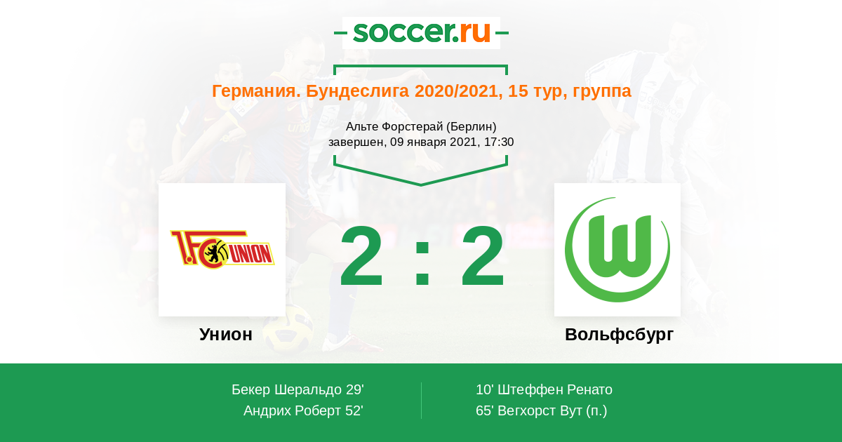 Протокол матча Унион против Вольфсбург