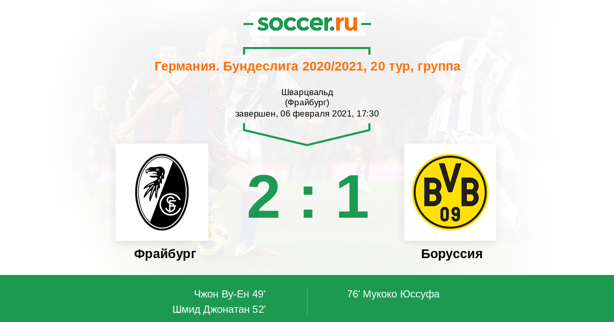 Протокол матча Фрайбург против Боруссия