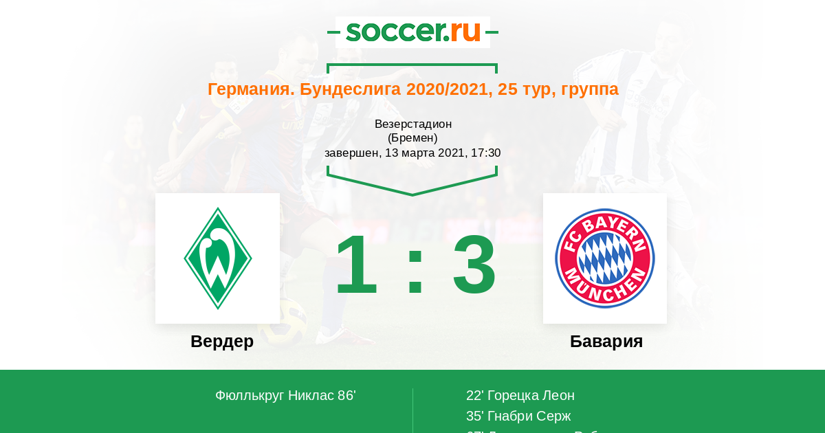 Протокол матча Вердер против Бавария