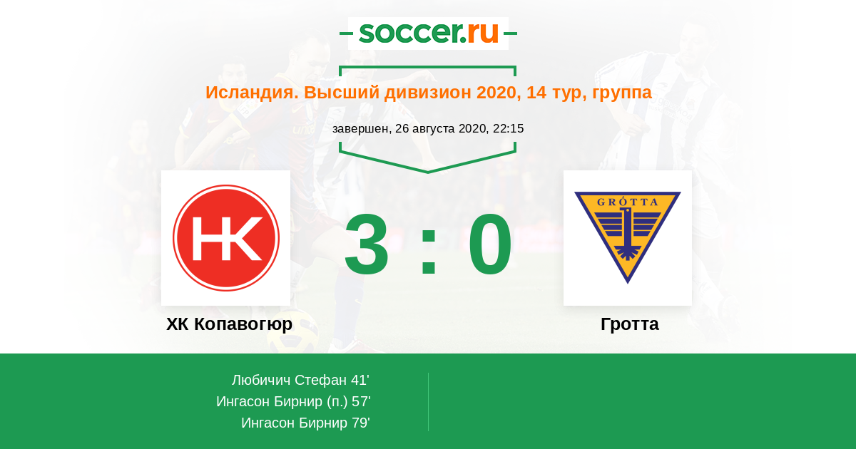 Протокол матча ХК Копавогюр против Гротта