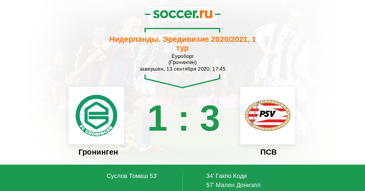 Протокол матча Гронинген против ПСВ