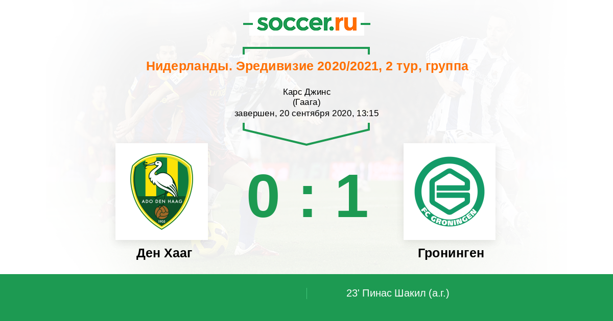 Протокол матча Ден Хааг против Гронинген