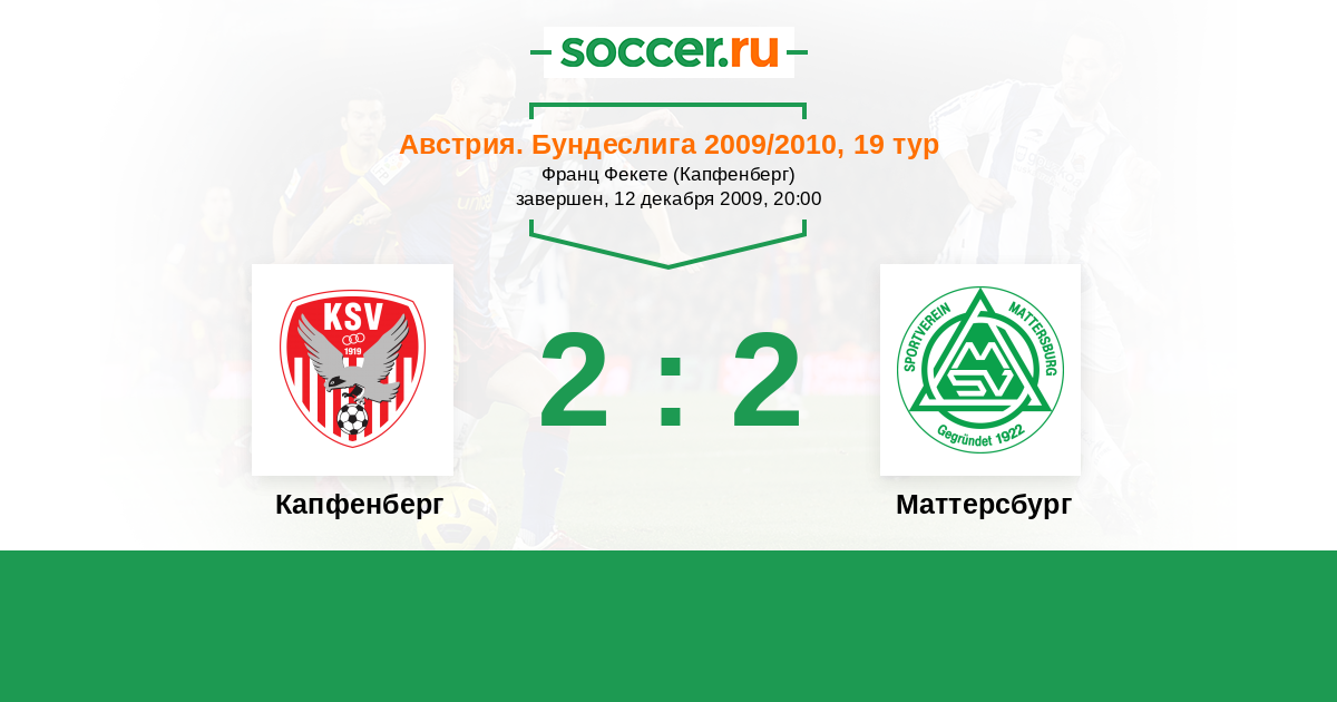 Австрия. Бундеслига 10.04.2010 Маттерсбург Логотип футбольный клуб Маттерсбург 3:1 Логотип футбольный клуб Капфенберг Капфенберг