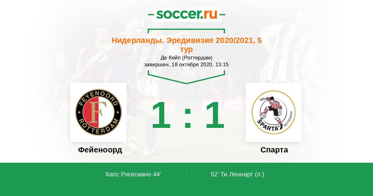 Протокол матча Фейеноорд против Спарта