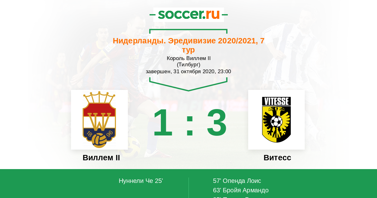Протокол матча Виллем II против Витесс