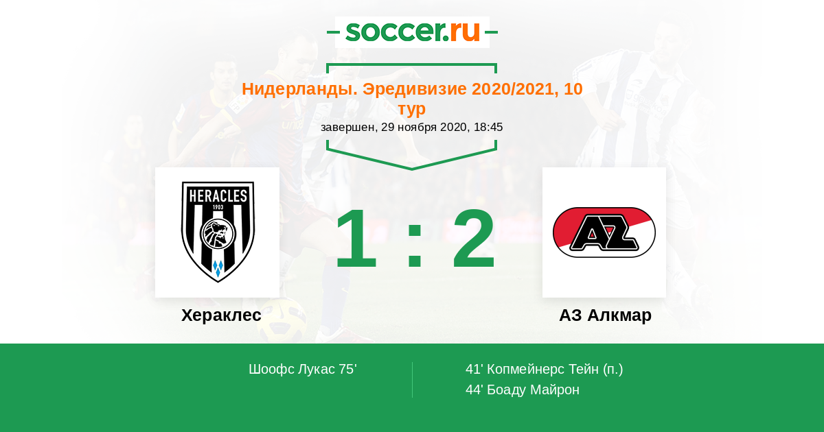 Протокол матча Хераклес против АЗ Алкмар