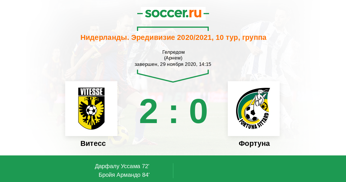Протокол матча Витесс против Фортуна