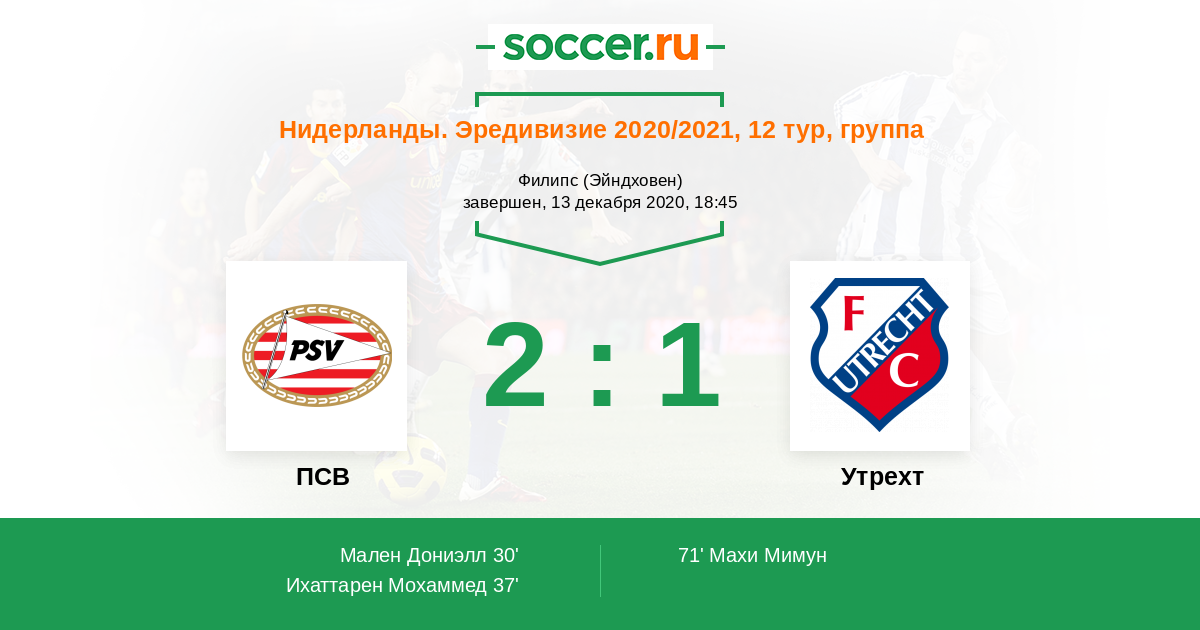 Протокол матча ПСВ против Утрехт