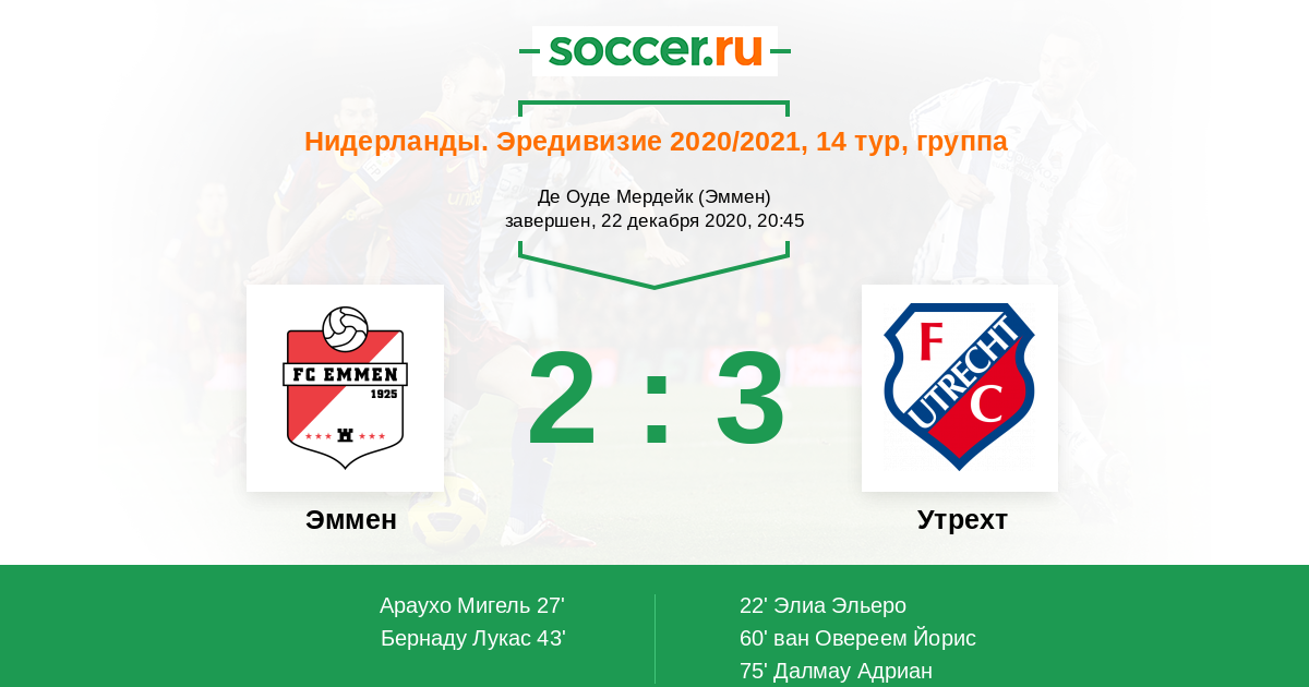 22' (0:1) Элиа Эльеро (11) (Ван де Стрик Сандер (22))
